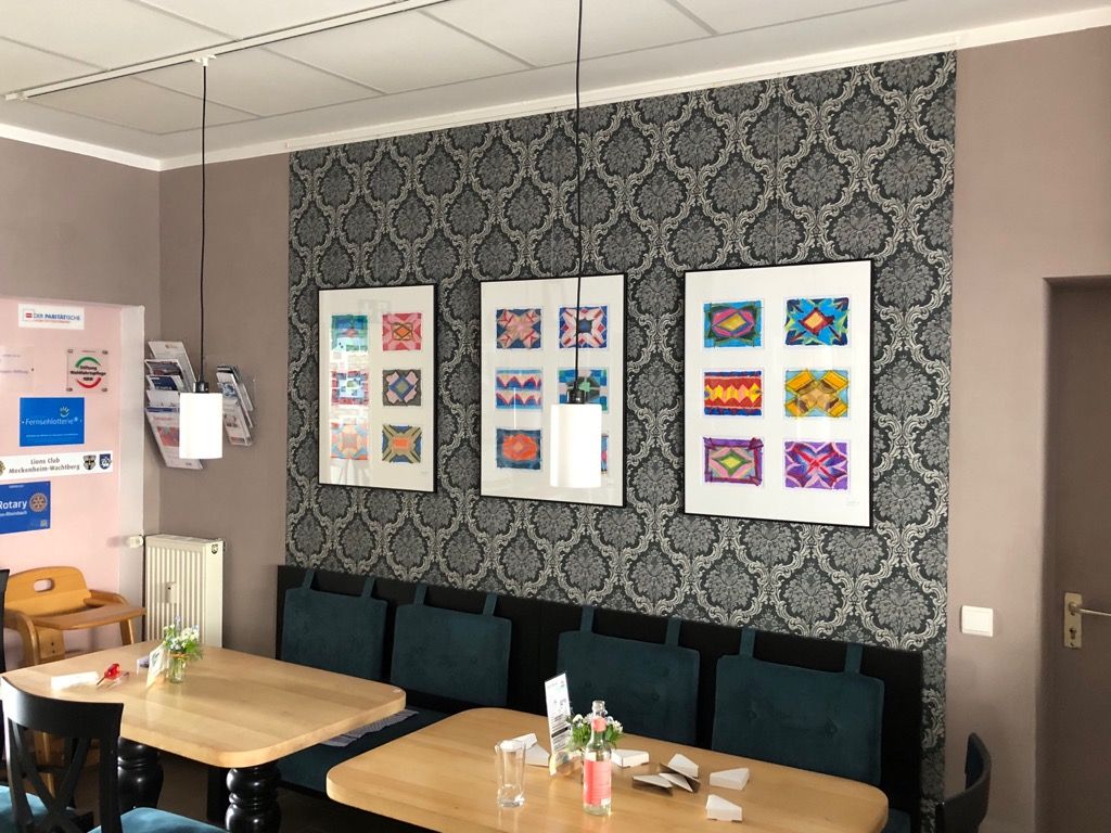 Seit Anfang Mai können die Gäste des Café sofa in Meckenheim den Farben- und Formenreichtum der beiden Künstlerinnen entdecken.